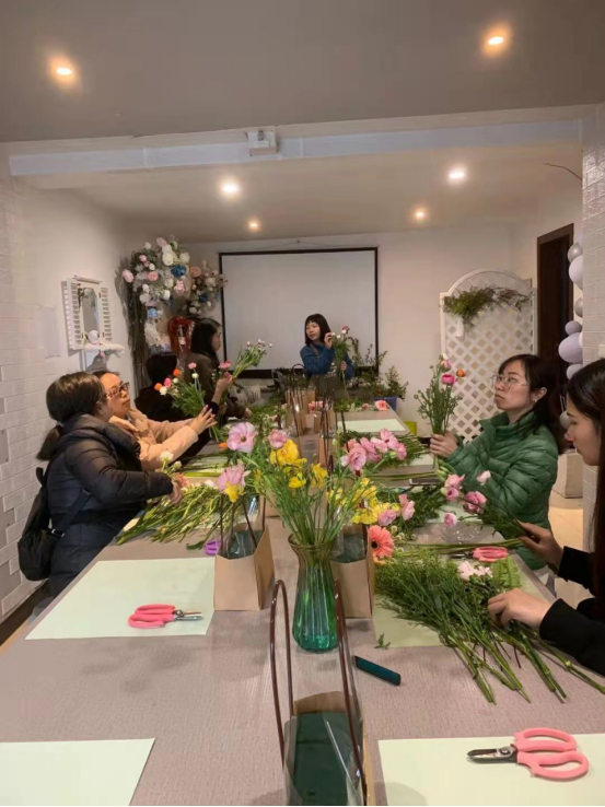 別致的動(dòng)手體驗(yàn)讓大家收獲滿滿,在一片歡聲笑語中,大家學(xué)習(xí)很多花藝知識(shí),同時(shí)也完成了自己的花藝制作,女神們臉上洋溢的笑容宛如花兒般燦爛