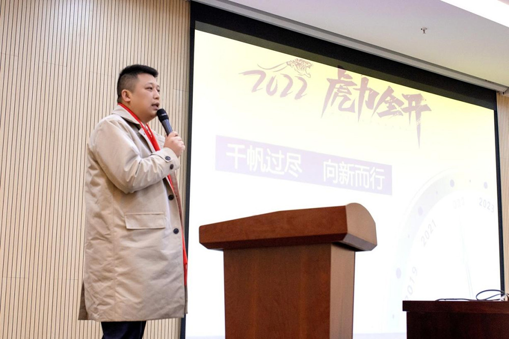 在年終總結(jié)會(huì)上,總經(jīng)理王宇對(duì)于公司在2021年的業(yè)績(jī)情況和工作做了總結(jié)并也提出了在2022年的工作任務(wù)和業(yè)務(wù)完成目標(biāo)。